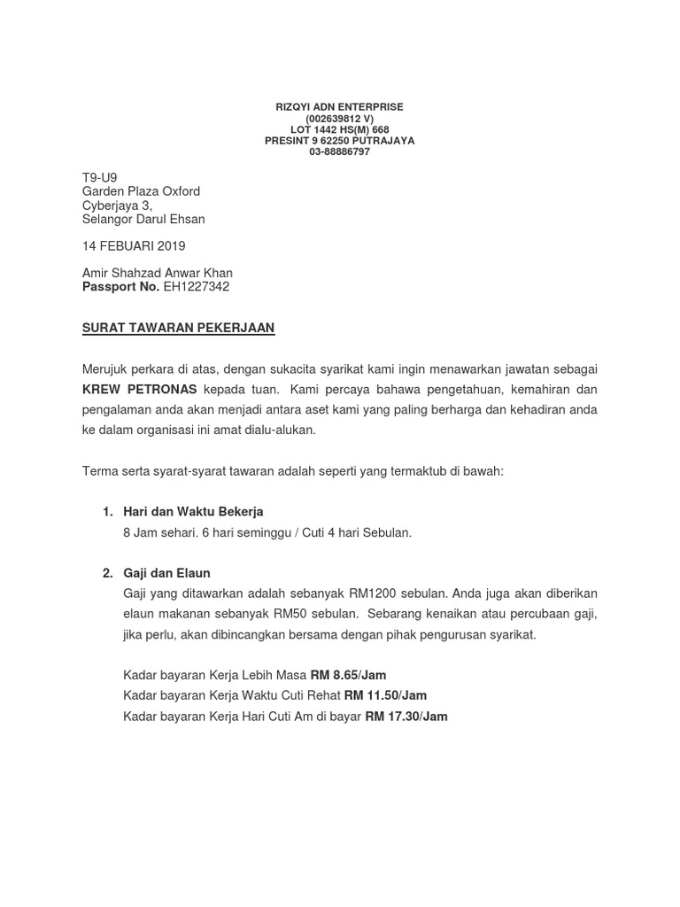 Surat Tawaran Pekerjaan Manager Pekerja Nje Food Enterprise No 44 Jln Ps 5 10 Taman Pinggiran Studocu
